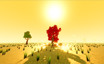 In a sun-bleached world clinging to what once was, a lone red tree stands — vibrant, cursed, and very much alive.